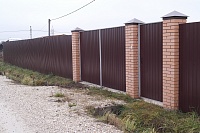 ЗАБОР ИЗ ПРОФНАСТИЛА С КИРПИЧНЫМИ СТОЛБАМИ 8 СОТОК